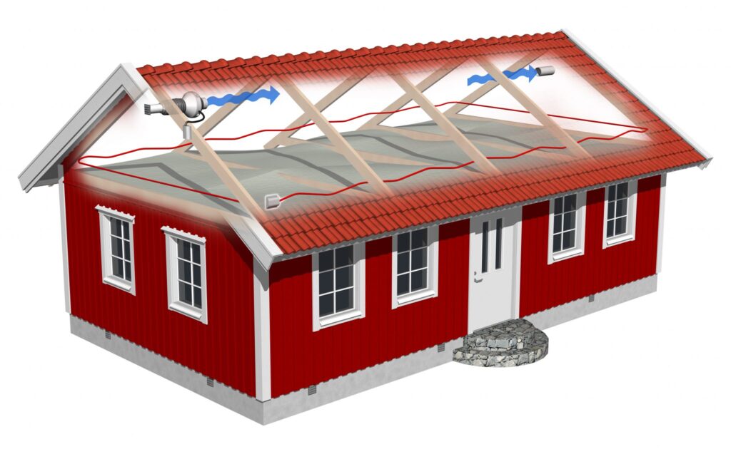 Tanken är att uteluften ska cirkulera genom vinden och transportera bort fukt.